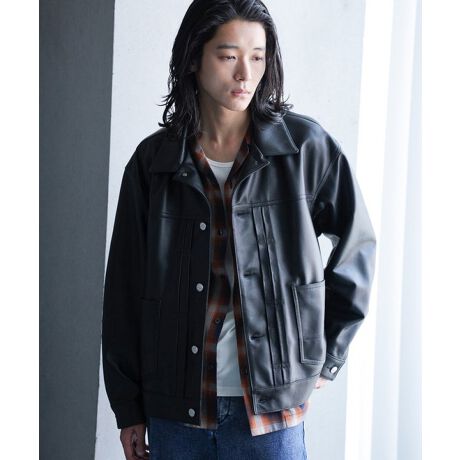 シンプルなスタイリングでも映える、存在感抜群のレザージャケットです。