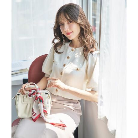 ※商品画像に使用されているスカーフは参考アイテムです。商品に含まれません。【春大人気だったニットが秋カラーになって再登場♪】【Point】・金ボタンのトラッドな雰囲気にさりげないスカラップデザインで、大人に調度いい甘さをプラスするニットプルオーバー。・パフスリーブが女性らしい優しげな印象に仕立てます。気になる二の腕のラインもさりげなくカバー。・すっきりと見える短丈でアウトスタイルでもバランス良く、スタイルアップして見せてくれる優秀プルオーバーです。・プルオーバーとしての着用がオススメですが、前開きデザインなので秋の軽い羽織りとしても着用いただけます。ケア方法:手洗い可能透け感:なし裏地:なし伸縮性:あり光沢感:なし生地の厚さ:中肉