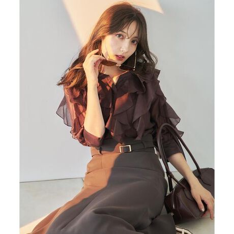 【花びらのようなラッフルフリルが華やかに女性らしさを引き立てる一枚】【Point】・ほんのり透け感のあるシアー素材で、上品さと華やかさを両立させたブラウス。・デコルテをすっきり見せるキーネックデザインで、甘さを抑えた大人な印象に。・スカートにもパンツにも合わせやすく、オフィスからお呼ばれシーンまで活躍する万能ブラウスです。・身頃部分には裏地を付けているのでインナーの透けに悩まず着用できるのも嬉しいポイントです。ケア方法:手洗い可能透け感:あり裏地:身頃部分あり伸縮性:なし光沢感:微光沢生地の厚さ:薄手