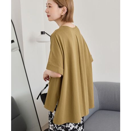 ひんやりと涼しく感じる接触冷感機能をもったシーズナルなプルオーバー。汗ばむ季節にも快適に着用いただける普段使いにぴったりの1枚です。前後差を付けたスクエアヘムやバックネックに施したタックアクセントがこなれたシルエットに。カジュアルなデニム合わせはもちろん、タックインでフェミニンなスタイルにも合わせられる汎用性の高いアイテムです。