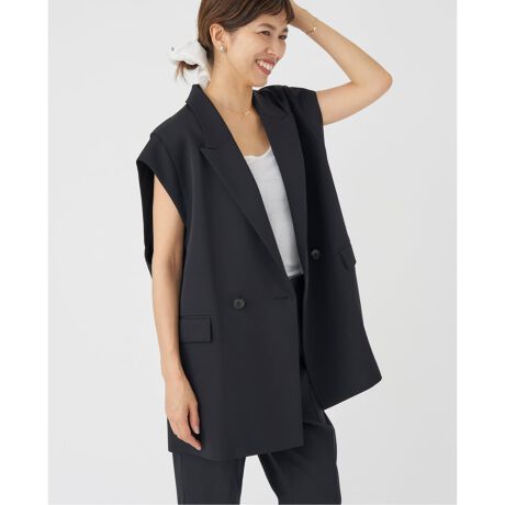 シャープな印象のダブルブレストに、やや肩を落としたフレンチスリーブを掛け合わせた、大人の抜け感が魅力のジャケット。