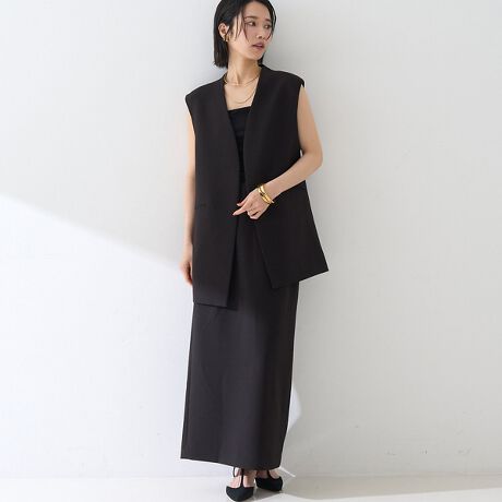 ストレッチダブルクロス素材を使用した、上品見えするジレ。