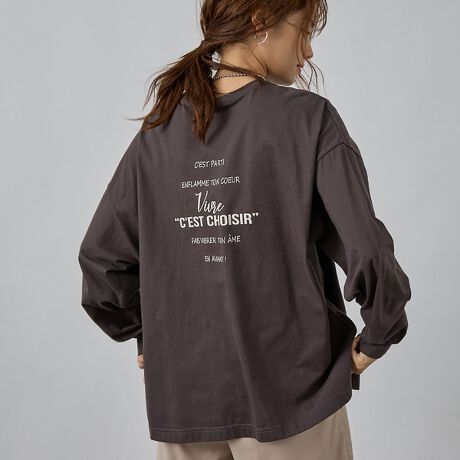 コーデの主役からインナーまで活躍する、マストハブなロンT!鮮度の高いロゴデザインがフロントとバックの両面に配しているのがポイント。ゆったりオーバーサイズながら、メンズライクになり過ぎないディテールに仕上げたオリジナルボディー使用。コットン100%ならではの張りすぎない程よいクタっと感がキュート。太めの袖も、袖口を絞ってあるのでまくりやすく、使い勝手・着心地ともに抜群です。