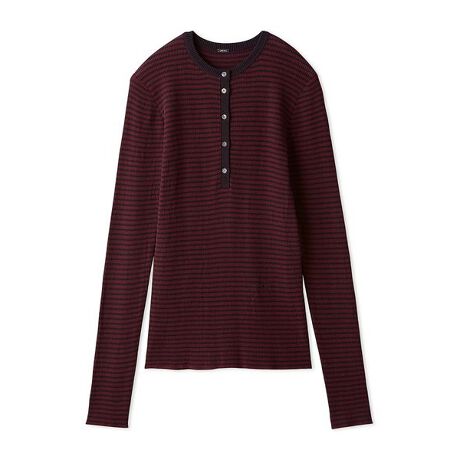 <b>【フロントボタンを開けてヌケ感を演出。ほんのりシアーな素材感で、レイヤードを楽しめるヘンリーネック。】</b>