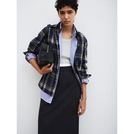 また、ネルシャツを腰に巻いたスタイリングも、今季らしいムードでおすすめです。