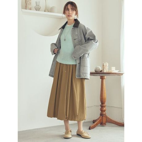ウエストのドロストデザインで、アスレジャームード溢れるバルーンスカート。