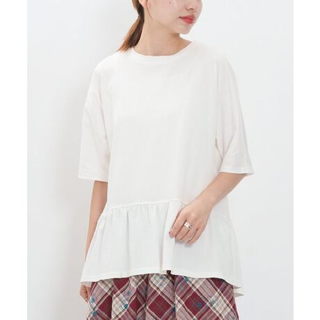 裾にはギャザーフリルをあしらい、シンプルながらも女性らしいアクセントをプラスしました。