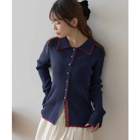 【WEB限定】バイカラートリムロングニットカーディガン