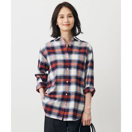 ■デザインベーシックなシャツデザインを、今年らしいAラインシルエットで仕上げたシャツブラウス。ゆったりとしたオーバーサイズなので、インナーに合わせるアイテムや体型を選ばず、自然とこなれた雰囲気を演出。釦をきちんと留めてシャツとして着ても、前を開けて軽い羽織として使ってもサマになる、着こなし自在のアイテムです。さらっと着るだけで、カジュアルスタイルに程よい抜け感と女性らしさをプラスするアイテムです。カラーは、クラシックで程よく華やかなオフ×ネイビー×レッドチェック(#302)、コーディネートに取り入れやすいブラック×オフチェック(#305)、落ち着きのあるカラーベースに明るさと華やぎを添えたネイビー×オフ×イエローチェック(#375)の3色展開です。