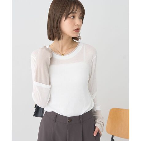 絶妙なバランスの配色レイヤードがこなれ感を演出するプルオーバー。程よくフィットするサイズ感ながら伸縮性のある素材で仕立てた着心地の良さも魅力です。シンプルで合わせるボトムを選ばず、着回しやすいのも嬉しいポイント。メイントップとしてはもちろん、ジャケットのインナーとしても活躍する万能アイテムです。透け感[ややあり]