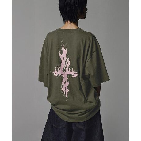 ファイヤーパターンとブランドを象徴する4マークを掛け合わせたグラフィックTシャツ。