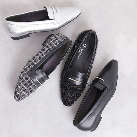 【片足150g】軽量 ラインストーンバー ソフトスクエアトゥローファー