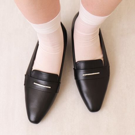・甲に飾ったラインストーンバーが映える1足です。