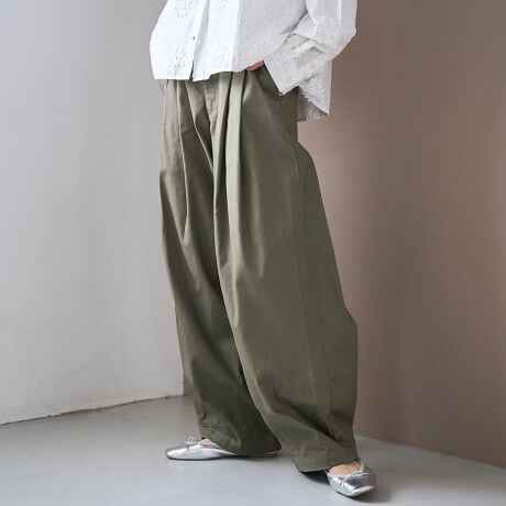 リラックス感のあるワイドシルエットで、程よくメンズライクな雰囲気に仕上げました。
