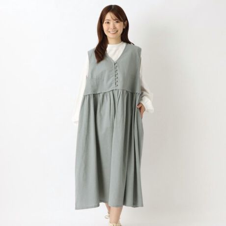 ウ工スト切り替え位置が高いので自然とスタイルアップも叶います。
