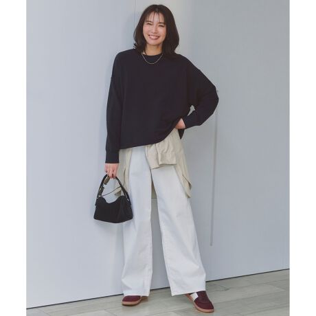 ■デザインベーシックながら新鮮なスタイルが叶う、ルーズシルエットのワイドデニム。程よいハイライズでウエストからヒップまではすっきりと、ヒップ下からはゆとりのあるワイドシルエットに仕上げました。身体のラインを拾わない、リラックスしたはき心地が魅力です。Tシャツ合わせでカジュアルにはもちろん、シャツやジャケットなどきれいめアイテムとも相性良く着こなせます。幅広いスタイルが楽しめる万能デニムです。ウォッシュブルー(172)、グレー(103)の2色にはウォッシュ加工をプラス。本格デニムに見せ、こなれ感を演出します。