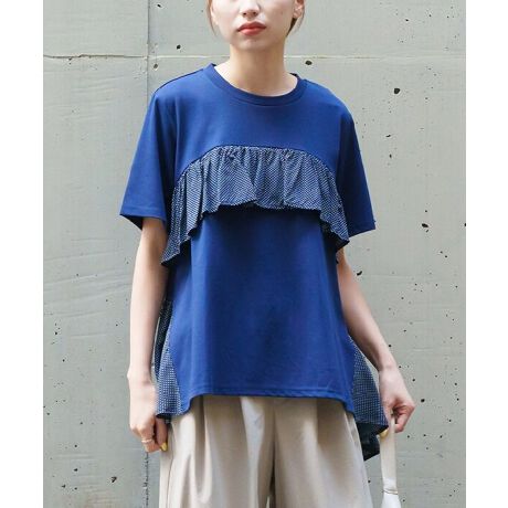 胸元の水玉フリルが大人かわいい印象。