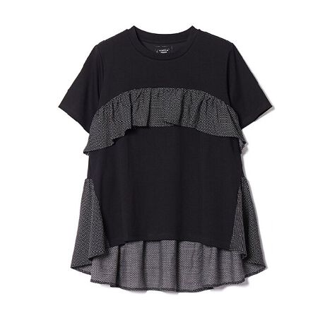 胸元の水玉フリルが大人かわいい印象。