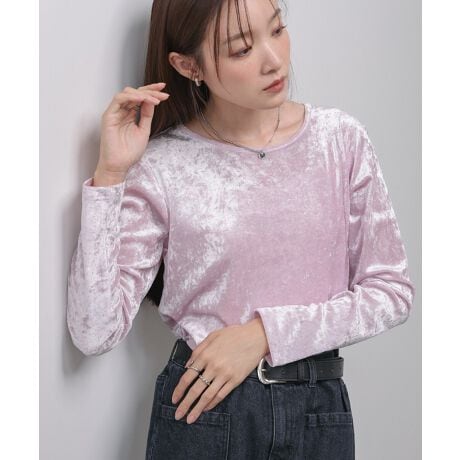 夏に大人気だったカットソーが長袖になって登場しました!ベロアならではの柔らかな手触りと光沢が特徴で、程よいシアーなので軽やかに着用いただけます。後ろ姿もオシャレな背面の切り替えラインでひと癖◎トップスとしてもインナーとしてもお使いいただけるアイテムです。