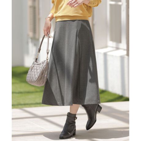 ■デザインやわらかに広がるラインが美しい、上品な雰囲気のフレアスカート。フロント部分にマチを入れることで、さりげないシルエットの変化を加え、シンプルな中に表情のあるデザインに仕上げました。通勤にもお出かけにも取り入れやすく、ブラウスやニットと合わせて着こなすのもおすすめ。同素材アイテムのジャケットを合わせるだけで、まとまったスタイリングが完成します。気温が下がりきらない季節から、秋のムードを取り入れられる、ロングシーズン活躍するアイテムです。