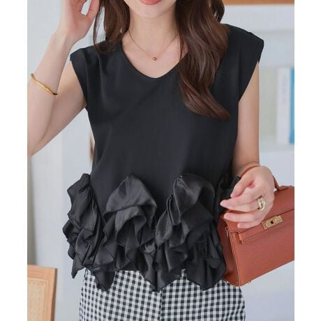 存在感のあるフリルヘムのボリューム感が目を惹くアクセント。