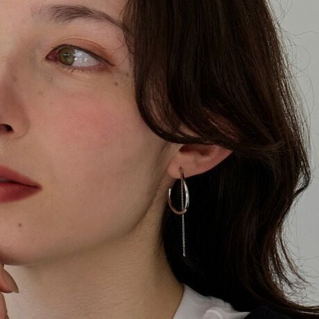 メタルの質感とチェーンのコントラストが耳元を大人っぽく、洗練された印象に仕上げてくれます。