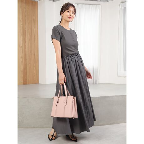 異素材を組み合わせたドッキングデザインが目を惹く、半袖のロング丈ワンピース。シンプルながらも、フロントのセンターシームがアクセントをプラスしてくれます。合わせる小物次第で、デイリーにもお出かけにも様々なシーンで活躍するアイテムです。
