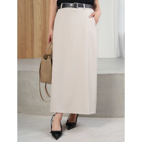 すっきりとしたタイトシルエットが女性らしい印象のロング丈スカート。ウエストマークのベルトが、アクセントをプラスしてくれます。ベーシックなデザインでカジュアルにもきれいめにも合わせやすく、幅広いスタイリングに活躍するアイテムです。