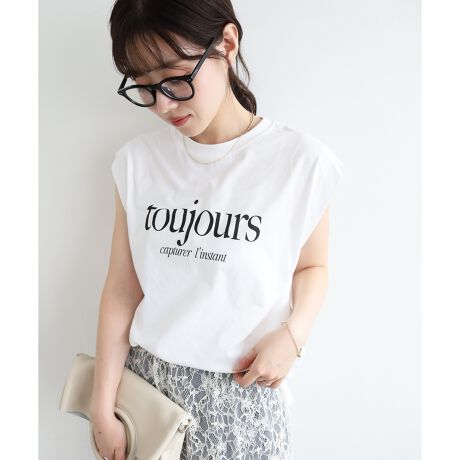 シンプルながらも存在感抜群のtoujoursロゴプリントフレンチTシャツ。
