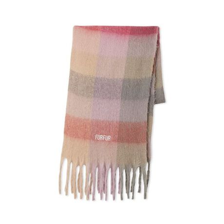 ロゴ刺繍をあしらったブロックチェック柄の大判ストール。トレンド感のあるカラーバリエーションで、コーディネートに華やぎを与えてくれるアイテムです。存在感のあるボリューム感は暖かさもばっちり。