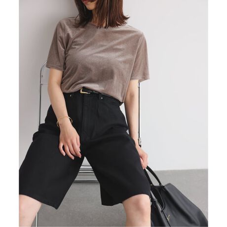 短め丈やデニム生地のカジュアルな印象を抑えて大人な雰囲気に。