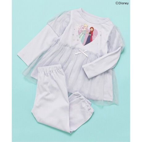 「アナ」と「エルサ」のイラストに、ドレス風のパフスリーブやふんわりチュールが目を引く一枚です。