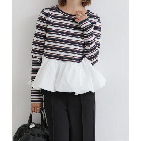 裾部分は張りのある布帛素材を使用し、異素材のかけ合わせが目を引くデザインです。