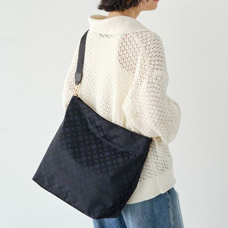 しなやかなナイロン素材にラシットのモノグラム柄が映える、洗練された印象のショルダーバッグ。