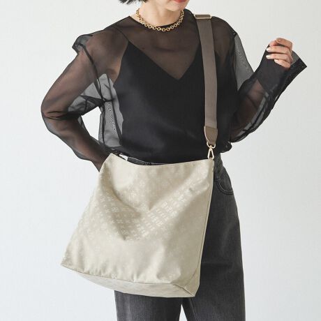 しなやかなナイロン素材にラシットのモノグラム柄が映える、洗練された印象のショルダーバッグ。
