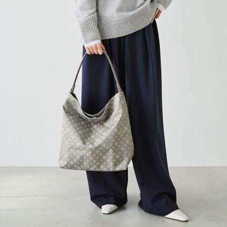 ・ブランドアイコンが映えるモノグラム柄で、カジュアルになりすぎず品よく決まる