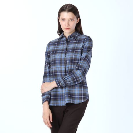 カジュアルコーディネートの主役としても重宝するチェック柄のシャツ。ぬくもりの感じられる風合いや秋冬シーズンらしい配色も魅力です。フロントは比翼仕立てを採用したことで柄の存在感が際立ちます。身頃にはダーツを施して、ボディに沿う女性らしいシルエットを創出。ボトムスを選ばない短めの丈感です。