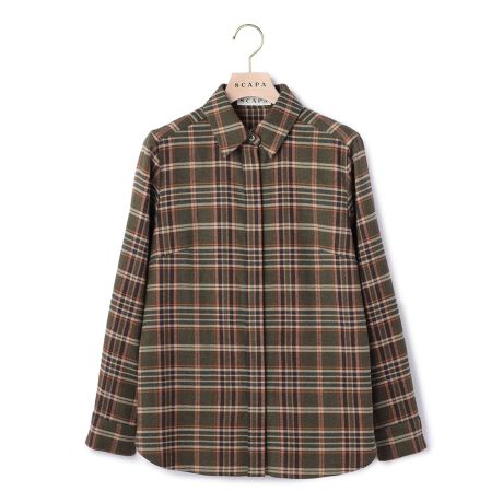 カジュアルコーディネートの主役としても重宝するチェック柄のシャツ。ぬくもりの感じられる風合いや秋冬シーズンらしい配色も魅力です。フロントは比翼仕立てを採用したことで柄の存在感が際立ちます。身頃にはダーツを施して、ボディに沿う女性らしいシルエットを創出。ボトムスを選ばない短めの丈感です。