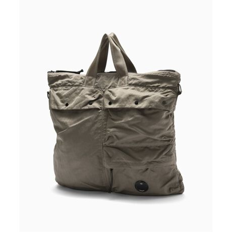 ミリタリーテイストのサテンマルチフィラメントナイロン「ナイロンB」を使用したショルダーバッグ。調節可能なショルダーストラップ、キャリーハンドル、ジップポケットを備え、フロントの外側にスナップポケット、裏側にスナップポケット、隠しジップポケットにはC.P.カンパニーのアイコンであるレンズがあしらわれています。内側にはロゴ入りジップポケットとメッシュポケット付き。ガーメントダイ加工と防滴加工。