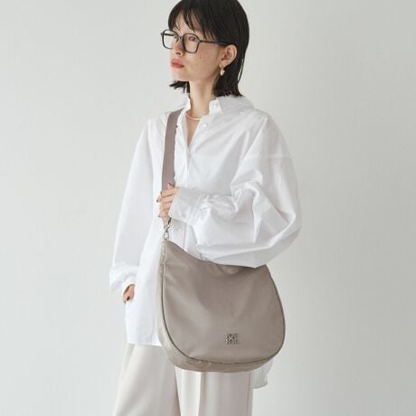 軽やかなナイロン素材を使用し、日々の荷物をしっかりと収納しながら、持った時のシルエットが美しく見えるよう設計されています。