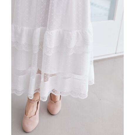 3種類のレース使いで贅沢なボリューム感のあるティアードスカート。