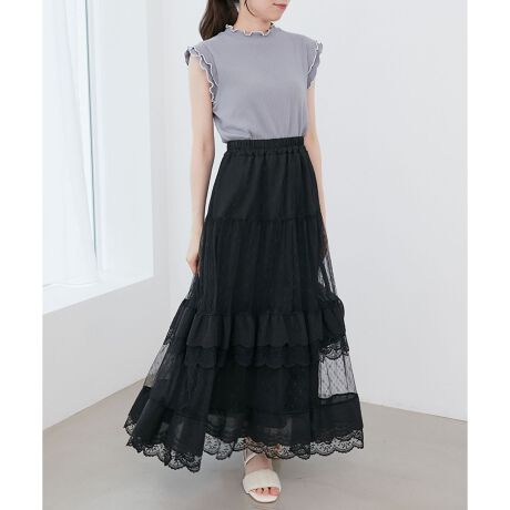 3種類のレース使いで贅沢なボリューム感のあるティアードスカート。