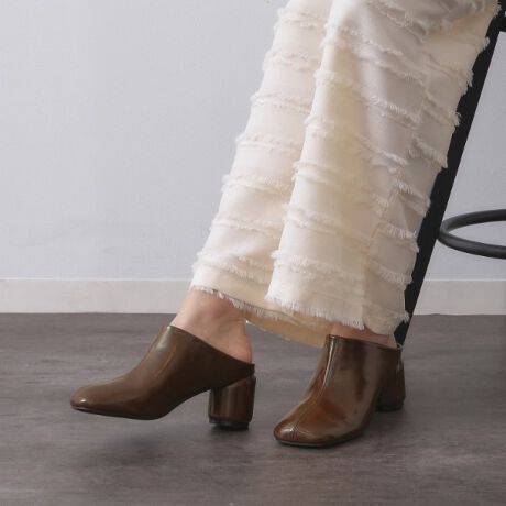 トレンド感のあるシルエットが印象的なスクエアトゥミュール