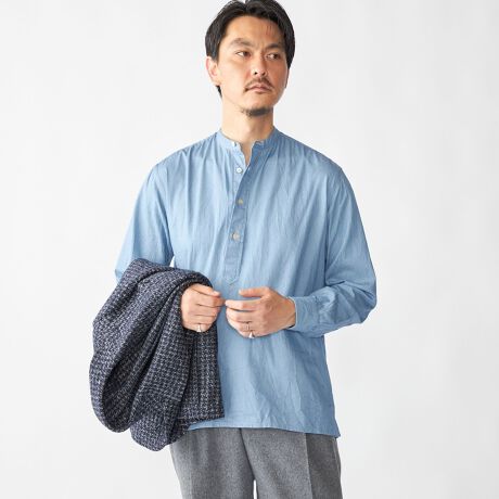 プルオーバー型のバンドカラーシャツです。