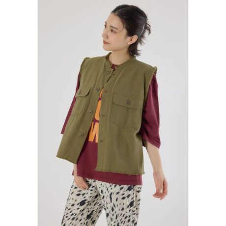 ■ポイントいつものTシャツに重ねるだけでこなれ感抜群のバックフリルベスト。さらりと羽織れる便利なアイテムです。■ディテール袖口も広めなのでボリュームのある袖のトップスとも合わせられます。バックフリルデザインです。裾・アーム・襟は裁ち切り仕様でフリンジ仕上げです。■スタイリングカットソーからブラウスまで、様々なトップスに合わせやすい1枚です。■生地KHA・BLKは綿100%ツイル使用。BLUは7.6ozINDIGOデニム使用。製品STONEBIO加工をしています。BLUは加工により多少の個体差と、経年劣化による色落ちがございます。裁ち切り部分のフリンジの仕上がりは多少の個体差がございます。■透け感:ややあり■裏地:なし■伸縮性:なし■光沢感:なし[注意事項]※画像の商品はサンプルです。実際の商品と仕様、加工が若干異なる場合があります。※画像の商品は光の照射や角度、お使いのモニター環境により、実物と色味が異なる場合がございます。※着用、お取り扱いの際は、アテンションタグをご確認ください。