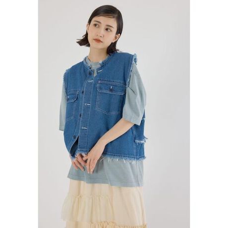 ■ポイントいつものTシャツに重ねるだけでこなれ感抜群のバックフリルベスト。さらりと羽織れる便利なアイテムです。■ディテール袖口も広めなのでボリュームのある袖のトップスとも合わせられます。バックフリルデザインです。裾・アーム・襟は裁ち切り仕様でフリンジ仕上げです。■スタイリングカットソーからブラウスまで、様々なトップスに合わせやすい1枚です。■生地KHA・BLKは綿100%ツイル使用。BLUは7.6ozINDIGOデニム使用。製品STONEBIO加工をしています。BLUは加工により多少の個体差と、経年劣化による色落ちがございます。裁ち切り部分のフリンジの仕上がりは多少の個体差がございます。■透け感:ややあり■裏地:なし■伸縮性:なし■光沢感:なし[注意事項]※画像の商品はサンプルです。実際の商品と仕様、加工が若干異なる場合があります。※画像の商品は光の照射や角度、お使いのモニター環境により、実物と色味が異なる場合がございます。※着用、お取り扱いの際は、アテンションタグをご確認ください。