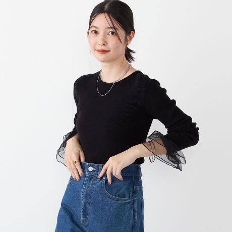 SHIPS Colors:〈手洗い可能〉チュール スリーブ リブ ニット◇