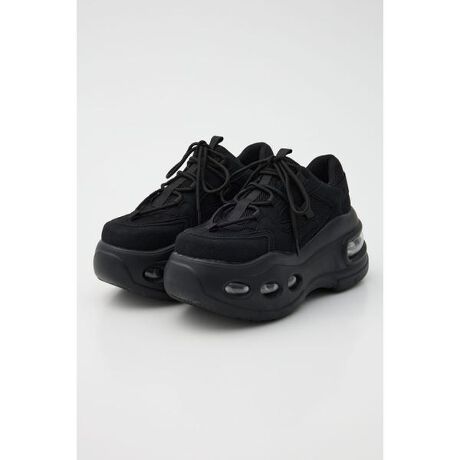 ■ポイントボリューム感のあるトレンディなハイテクスニーカー。エアーパーツ入りのクッションが内蔵されており、歩きやすさにもこだわった仕上がりになっています。クールなブラック、ナチュラルな雰囲気の柄ベージュ、差を付けたいマルチカラーの3色展開となっております。■ディテール厚底でも安定感があり、スタイリングにもマッチしやすいスポーティーなアイテムです。■スタイリングパンツスタイル、スカートやワンピースとカジュアルなスタイリングから、トレンドスタイルまで幅広くお使い頂けます。厚底デザインで、スタイルアップ効果も期待できます。■素材ソール部分に小さな穴が開いていることがありますが、型に流し込む際の気泡の為、完全に無くすことはできませんので予めご了承ください。インソール部分のロゴプリントは永久的なものではなく、使用中に加わる摩擦や磨耗によって徐々に薄れたり、剥離したりする事があります。BLKのつま先部分のスエード素材は色落ちします。着用時に他の衣類や雑貨、家具類に色移りする事があります。特に汗や雨等で湿った状態では、色落ちが顕著になります。白、淡色との組み合わせは十分ご注意下さい。[注意事項]※画像の商品はサンプルです。実際の商品と仕様、加工が若干異なる場合があります。※画像の商品は光の照射や角度、お使いのモニター環境により、実物と色味が異なる場合がございます。※着用、お取り扱いの際は、アテンションタグをご確認ください。