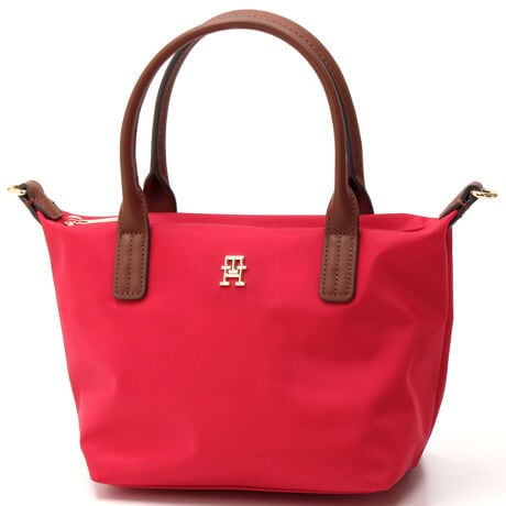 ちょっとしたお出掛けや移動の際に便利なミニトートバッグ。マチを広めにとっているため、見た目以上に収納力があります。本体にハリのあるナイロン地、トリム部にレザーを使用しました。ショルダーストラップはお好みでつけ外し可能。前面にはアクセントとなるメタルのTHモノグラムを配しています。