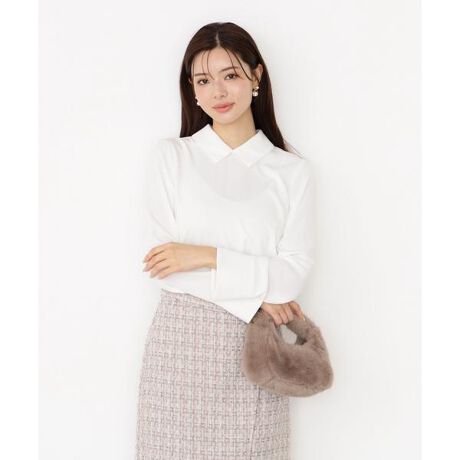 シンプルな小さい襟付きブラウスです。袖口のスリットを前に入れて、きらっとボタンをポイントに。1枚で着るのはもちろん、ジャケットインにも着やすいデザインです。